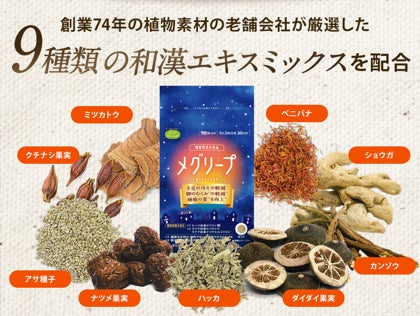 「手足の冷え軽減」「脚のむくみ軽減」「睡眠の質向上」の3つの機能を兼ね備えた機能性表示食品「メグリープ」を11月20日新発売