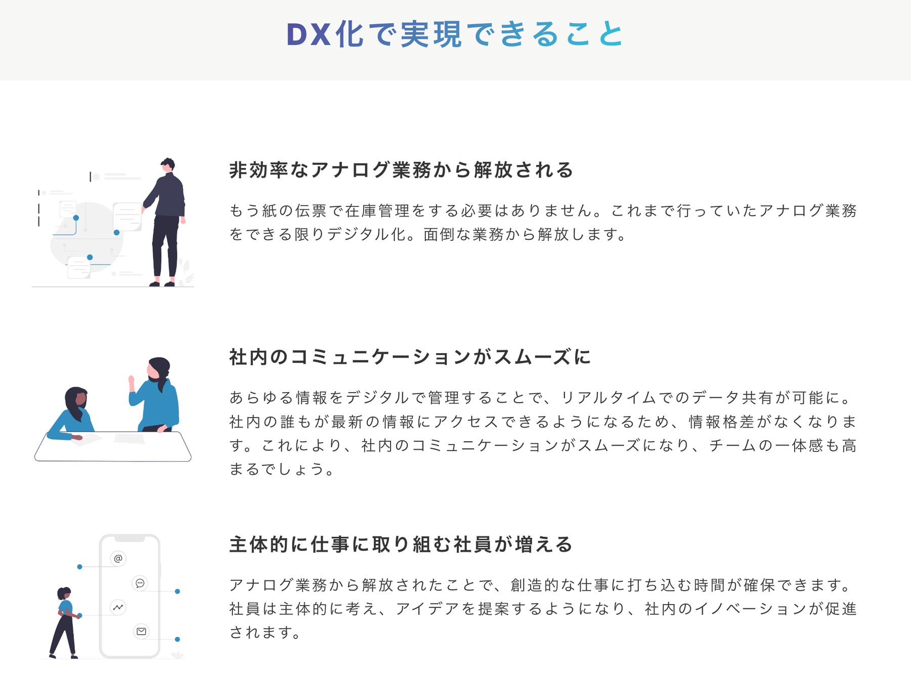 他にも、DX化の推進にはミスや漏れの防止、コスト削減、顧客満足度の向上などたくさんの効果があります。