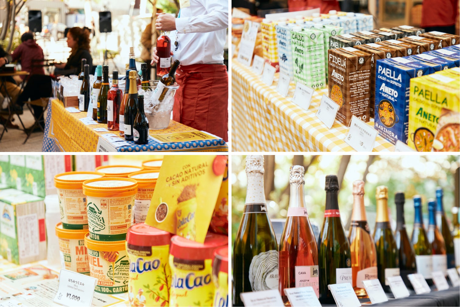 各種ワイン、ビール、生ハムやフエ、スープ、菓子類まで、カタルーニャ産の多様な飲料品・食品が購入できます。試飲・試食の提供もあります。