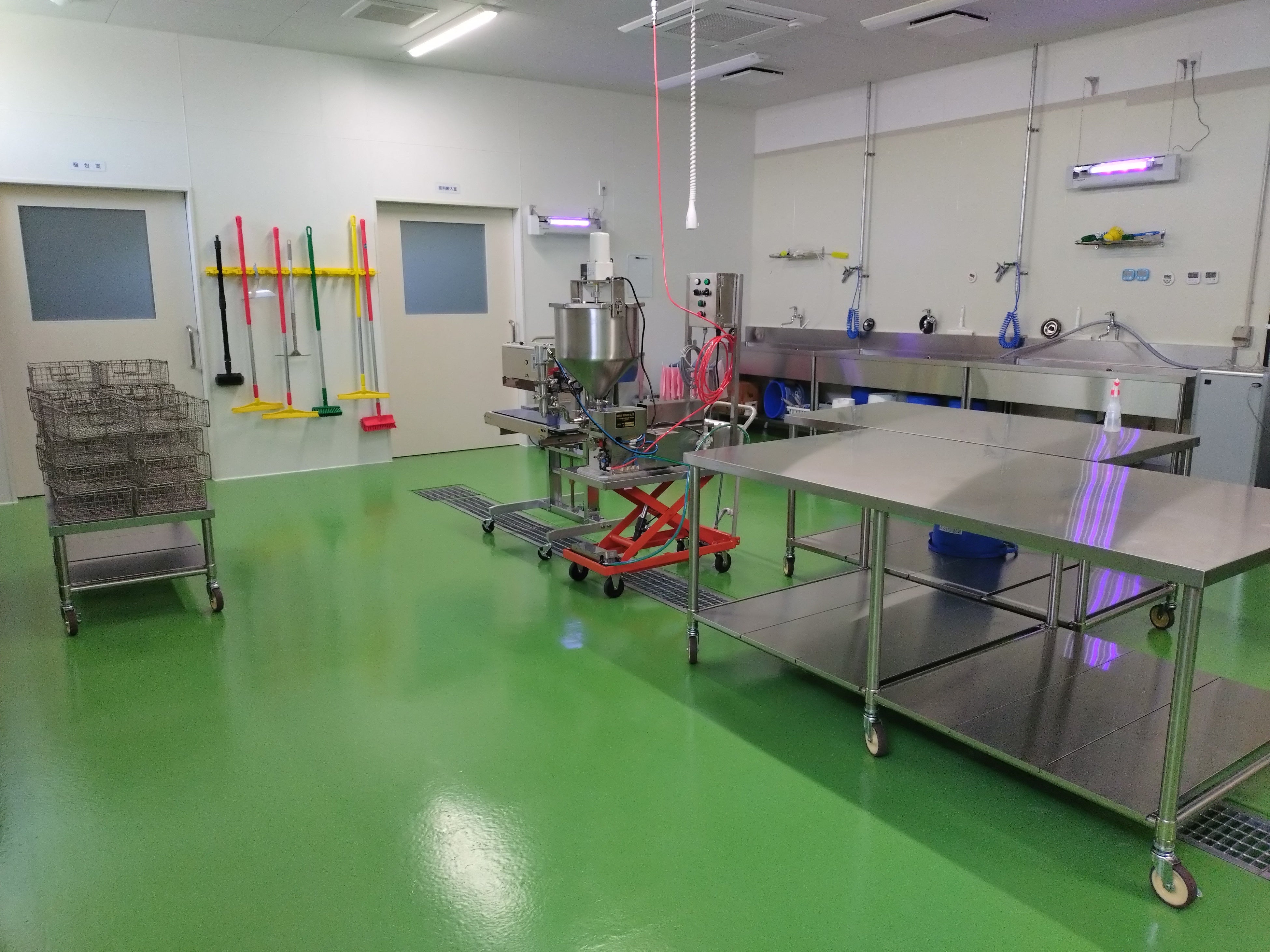 弊社が整えた加工食品の開発生産体制は、サンチュのみならず様々な野菜・果物を、比較的小ロットからでも対応できる特徴があります。従業員が常勤する既存の栽培施設の一角に加工工場を設け、往来の負担を削減しています。倉庫や運搬機など、これまでの設備も多分に利用しており、競争力のある価格を実現できるコストで量産が可能です。