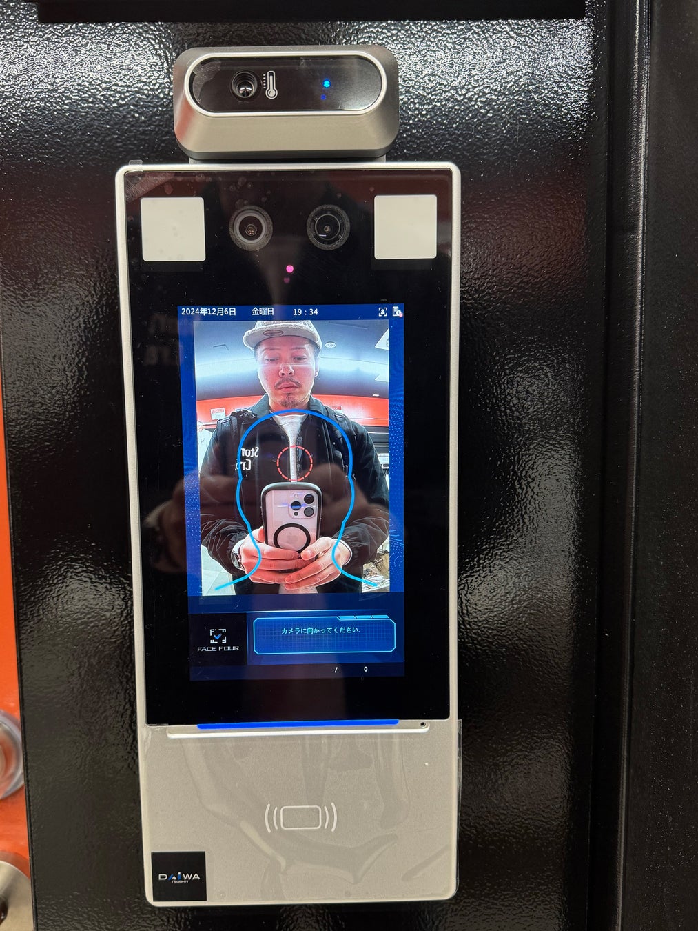 ドア横にカメラ付きのモニターが設置されているので、こちらのモニターの顔シルエット部分に顔を近づけます。