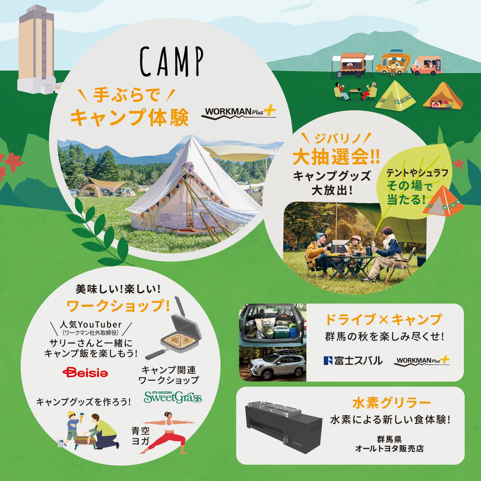 また、15:00から県民広場にてキャンプグッズ等が当たる大抽選会を開催します。