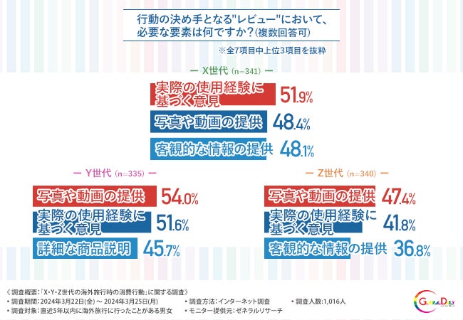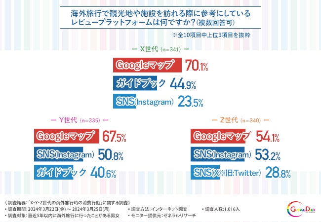 【X・Y・Z世代の海外旅行時の消費行動】約9割が観光地や食事・ショッピングでレビューを参考にすると回答!