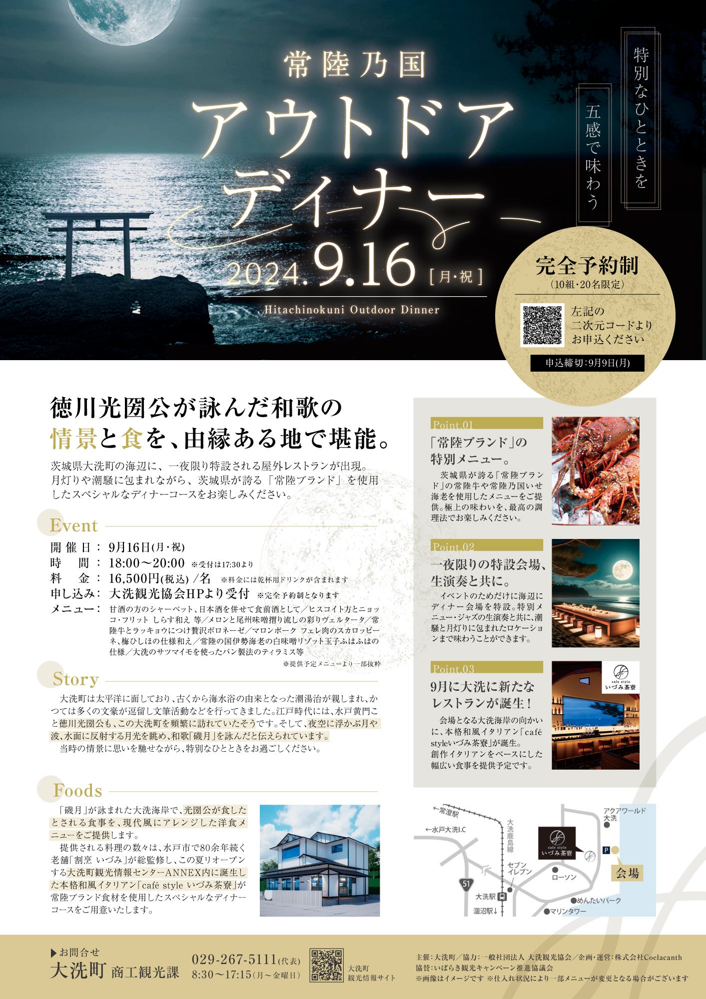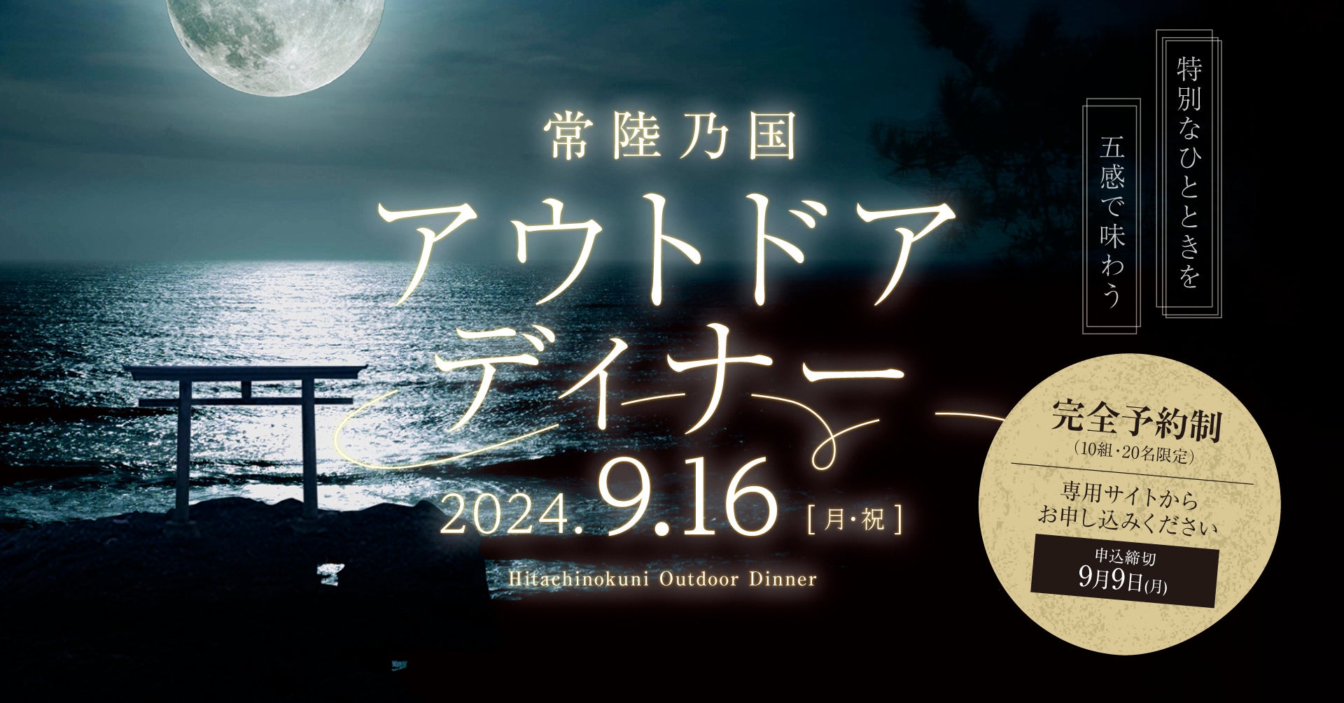 大洗の海辺に一夜だけ現れる特別なレストラン。 月灯りと潮騒とともに楽しむ「常陸乃国アウトドアディナー」を9月16日(月・祝)開催。
