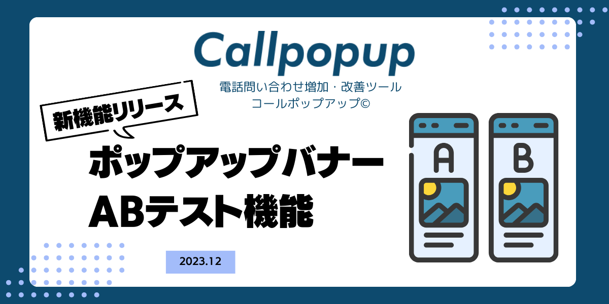 電話問い合わせ増加ツール『コールポップアップ©』新機能「ポップアップバナーABテスト」をリリース