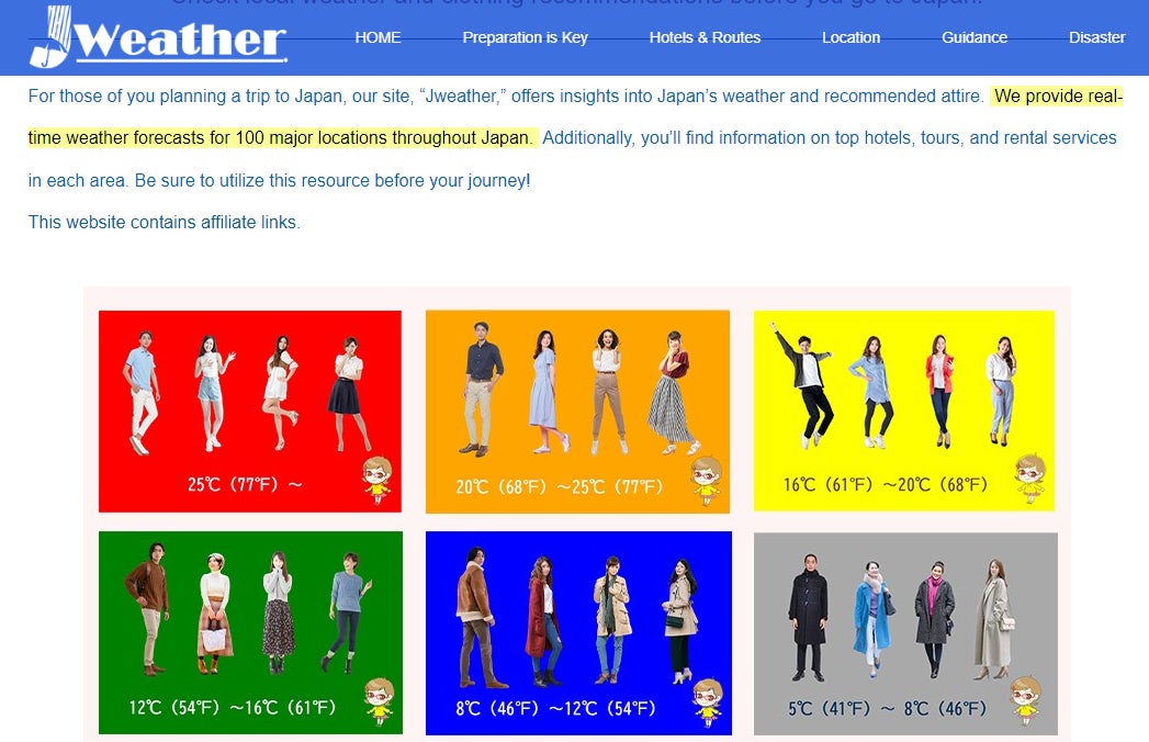 ・日本各地の天候とおすすめの服装を紹介するサイト「Jweather」
