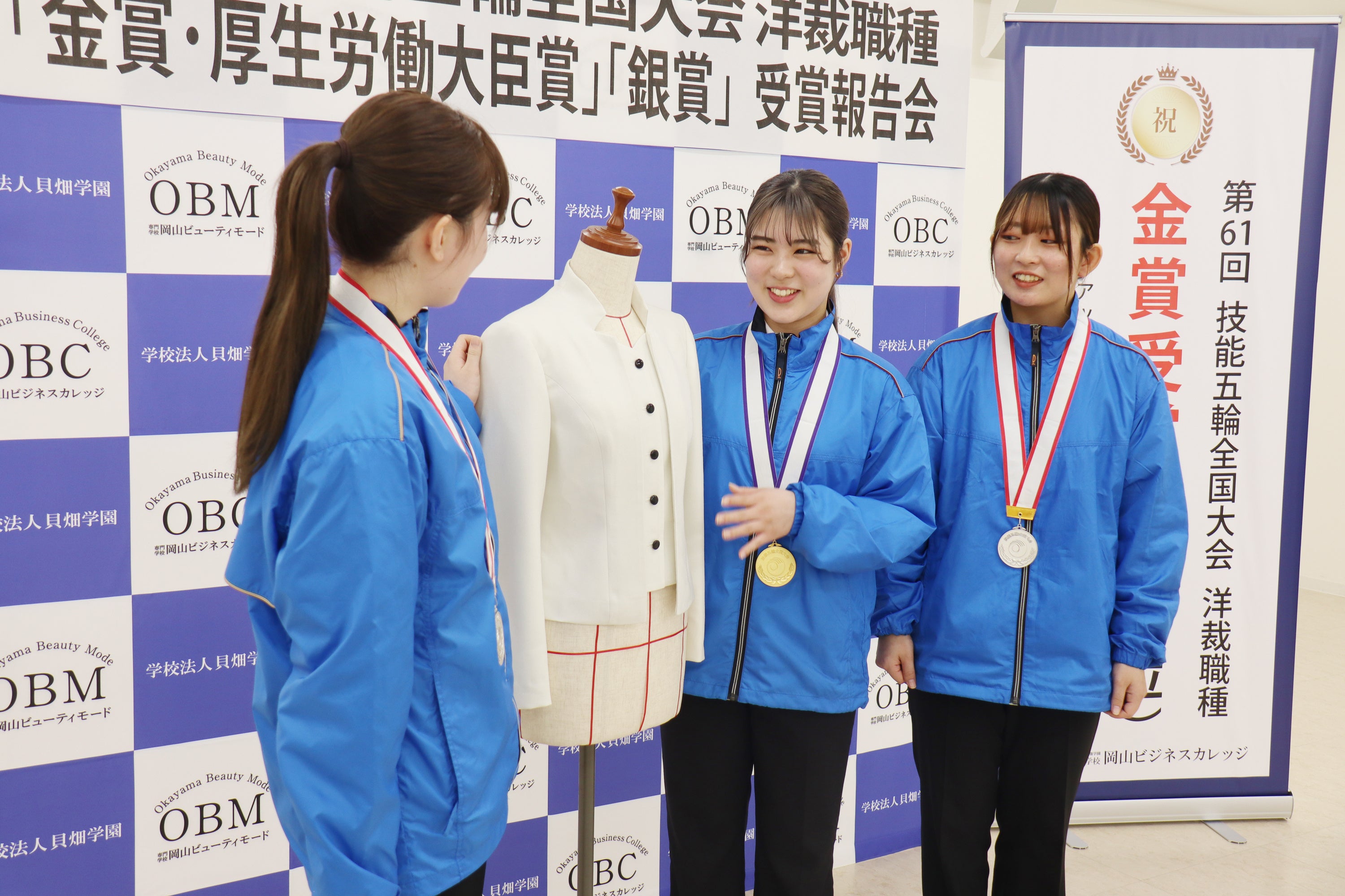 「技能五輪全国大会」、「ファッションスクールアワード」それぞれの受賞により岡山ビジネスカレッジファッション学科の教育力や技術力が、さらに公に認められたことになります。