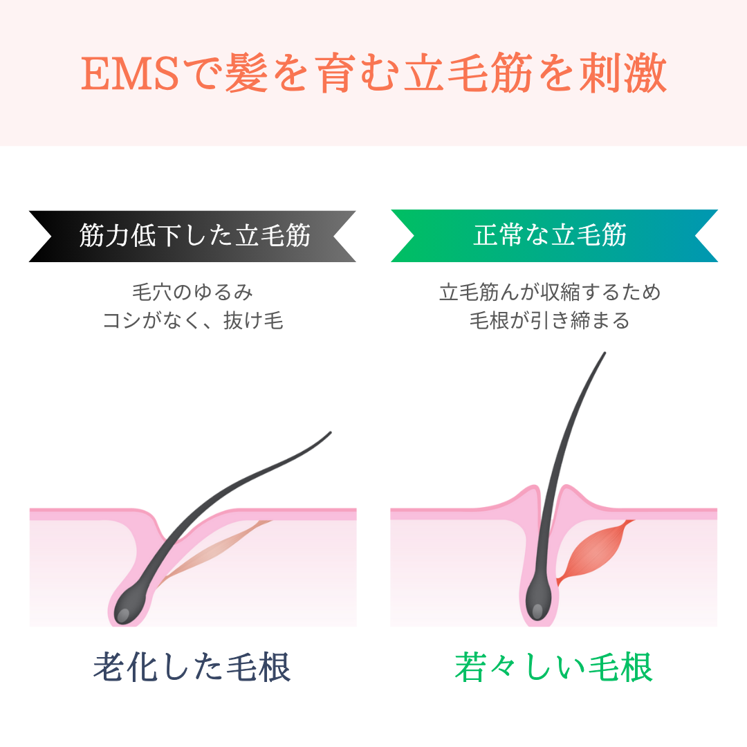 - EMS機能: 微弱な電気刺激が頭皮の筋肉を直接刺激し、普段使わない筋肉にアプローチ。手軽にリフトケア※が可能です。