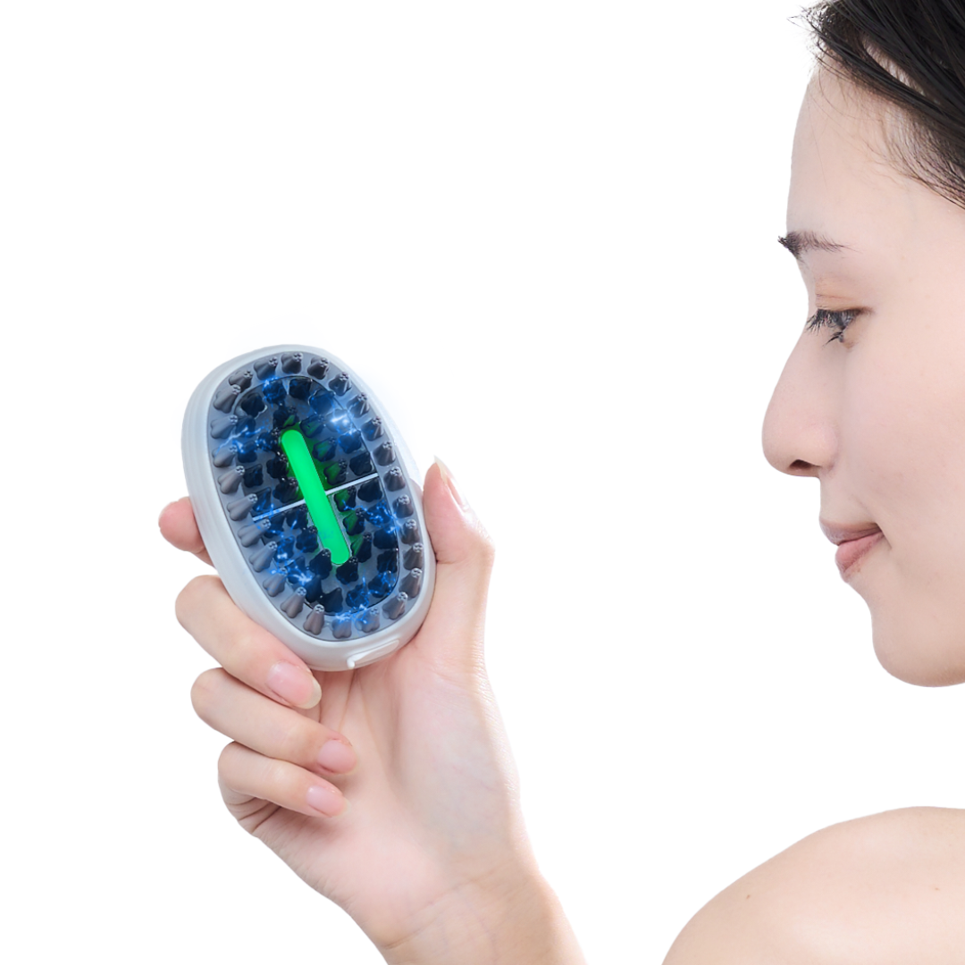 BEBRIGHTは、EMS(Electrical Muscle Stimulation)、LED技術を搭載したシリコン製のブラシを通じて、髪と頭皮、さらには表情筋への効果的なケアを提供します。
