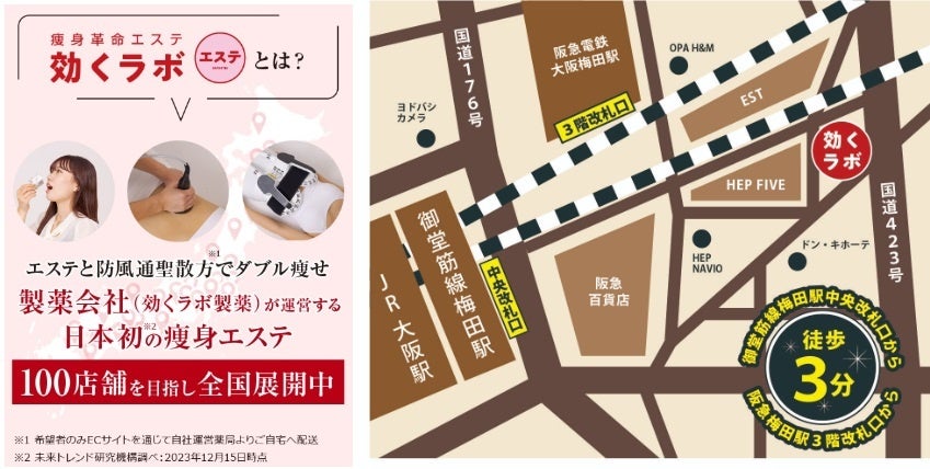 新宿1号店のOPENからわずか10日足らずで…大阪梅田2号店のOPENが12月13日に決定★「エステ」と「防風通聖散」でダブル痩せする日本初のエステ「痩身革命エステ・効くラボ」の快進撃が止まらない!