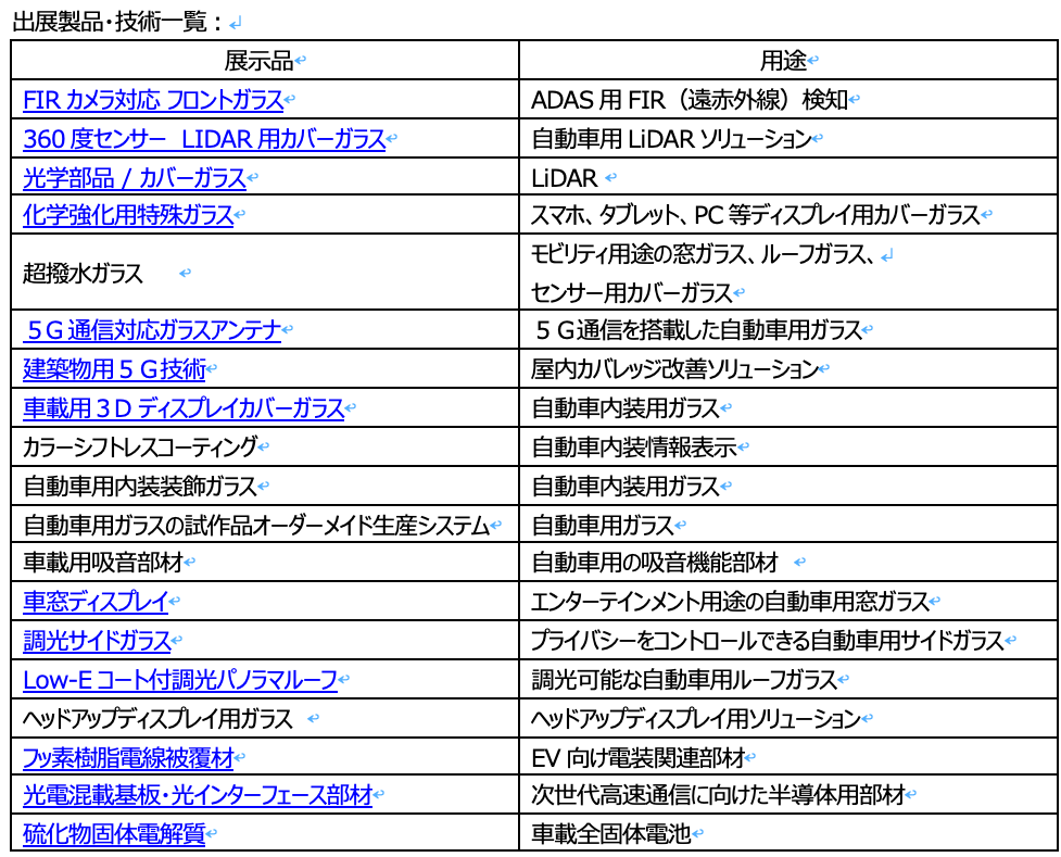 CES2024でAGCが展示した主な素材・ソリューションは以下の通りです。