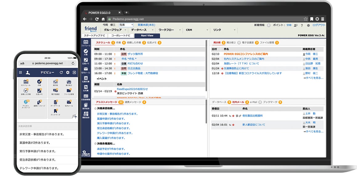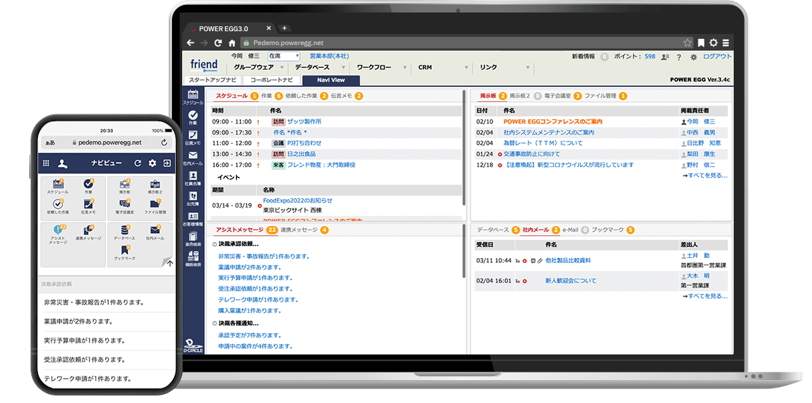 「POWER EGG」は、汎用申請ワークフロー、Webデータベース、グループウェアなどの機能を保有し、業務プロセスの可視化、既存業務のペーパーレス化、大幅な業務の効率化を実現するソリューションです。2023年11月末時点で、1,530社(自治体:78団体、金融機関:89機関を含む)、約58 万4千ライセンスの販売実績を有しています。