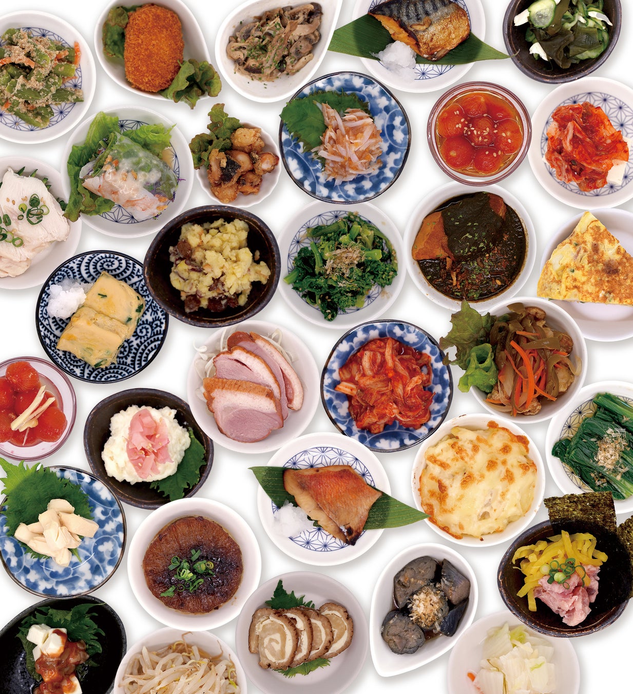 白菜キムチ/コリコリ梅水晶/白菜漬け/極上酒盗/キムチ奴/ガリポテサラダ/酒盗とクリームチーズ/いぶりがっこクリームチーズ/ねぎろとたく/さつまいもとレーズンのサラダ/合鴨スモーク/小松菜のおひたし/菜の花のからし和え/ピリ辛こんにゃく/茄子の揚げ浸し/わかめときゅうりの酢の物/ミニトマトの中華風マリネ/ミニトマト蜂蜜生姜漬け/金目鯛西京焼き/鯖の塩焼き/大根ステーキ/インゲンの胡麻和え/色々きのこのガーリックソテー/だし巻き卵/しっとり鶏ハム/海老の生春巻き/ポテトサラダグラタン/ポテトのスパニッシュオムレツ/もやしのナムル/クリームチーズの味噌漬/ブラックカレーの頭/クリームコロッケ/ホタテの南蛮漬け/タコの唐揚げ