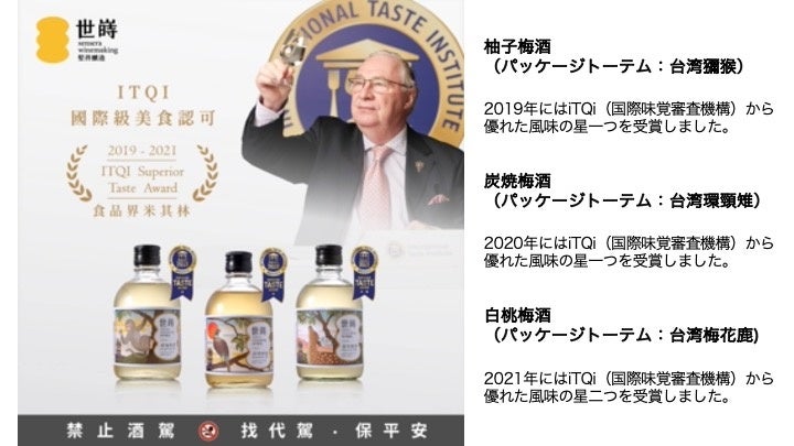 台湾産ブランド「世嵵」は、もともとは有名ブランドの赤ワイン、ウイスキー、フルーツ酒、高粱酒などの受託製造を手掛けていましたが、受託製造に依存する状況を変革したいとの思いから2019年に自社ブランドで国際コンテストに出品、受賞を果たした。その主力商品は3つのiTQi賞を獲得し、2023年自社ブランド「世嵵」は市場に進出しました。台湾特有の果物資源を駆使し果実酒をブランドの主軸としています。市場で流通する2〜3ヶ月で完成する梅酒と異なり、白ブドウを基にして最低でも1年以上の熟成を経て香りを保ちつつ人工的なアルコール刺激や不連続な味わいを避け、豊かな余韻を残す白蘭地を使用しています。