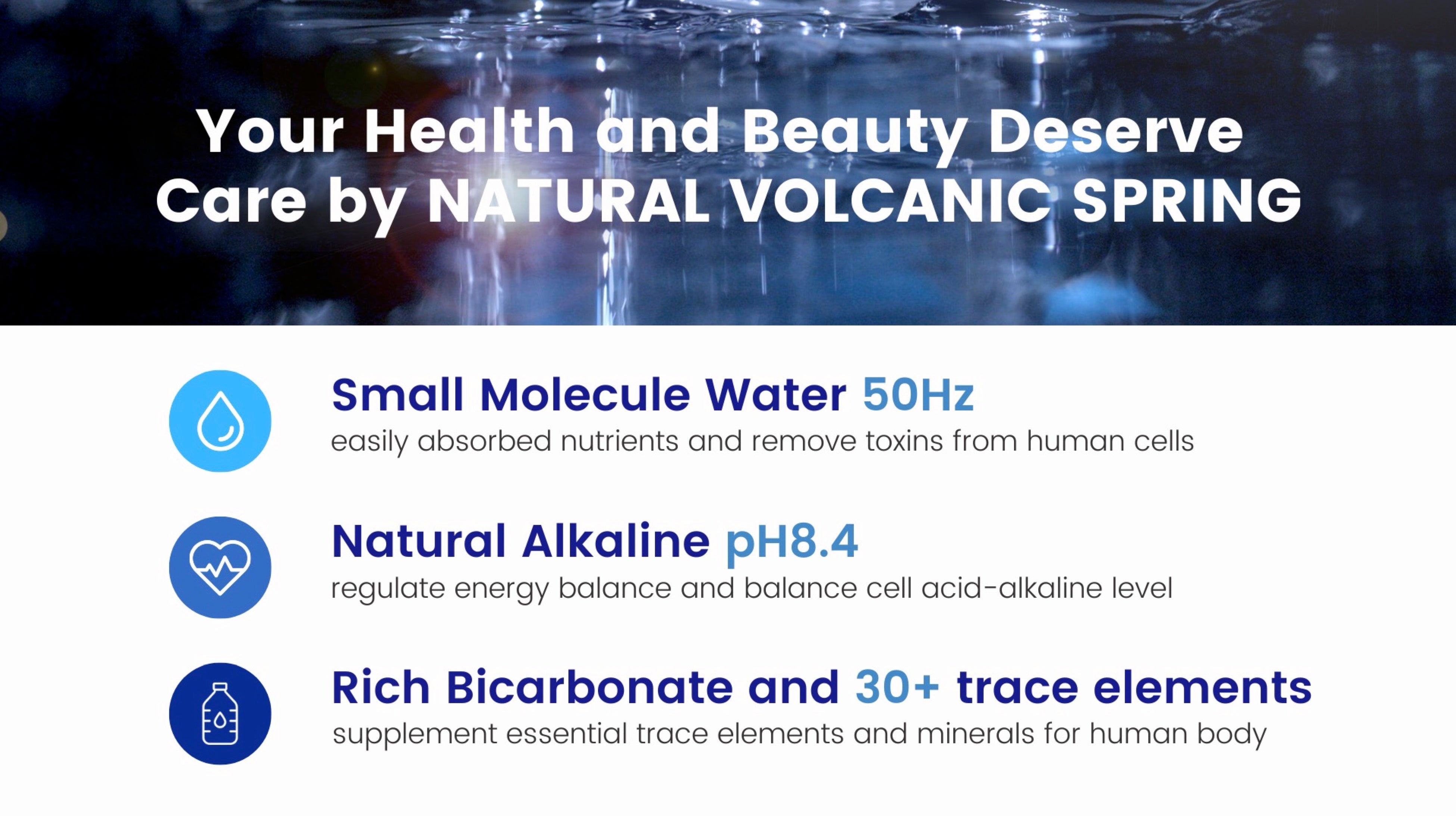 長い年月をかけて岩石層を浸透した雨粒が、私たちの体に必要な豊富なミネラルを含んだ純粋な水となりました。このナチュラルミネラルウォーターには、主要ミネラルと稀少ミネラルが合わせて30種類も含まれており、特に美容分野で注目されているシリカや重炭酸塩が豊富です。なめらかな口当たりのマンナで、あなたの健康と美しさをおいしくサポートします。