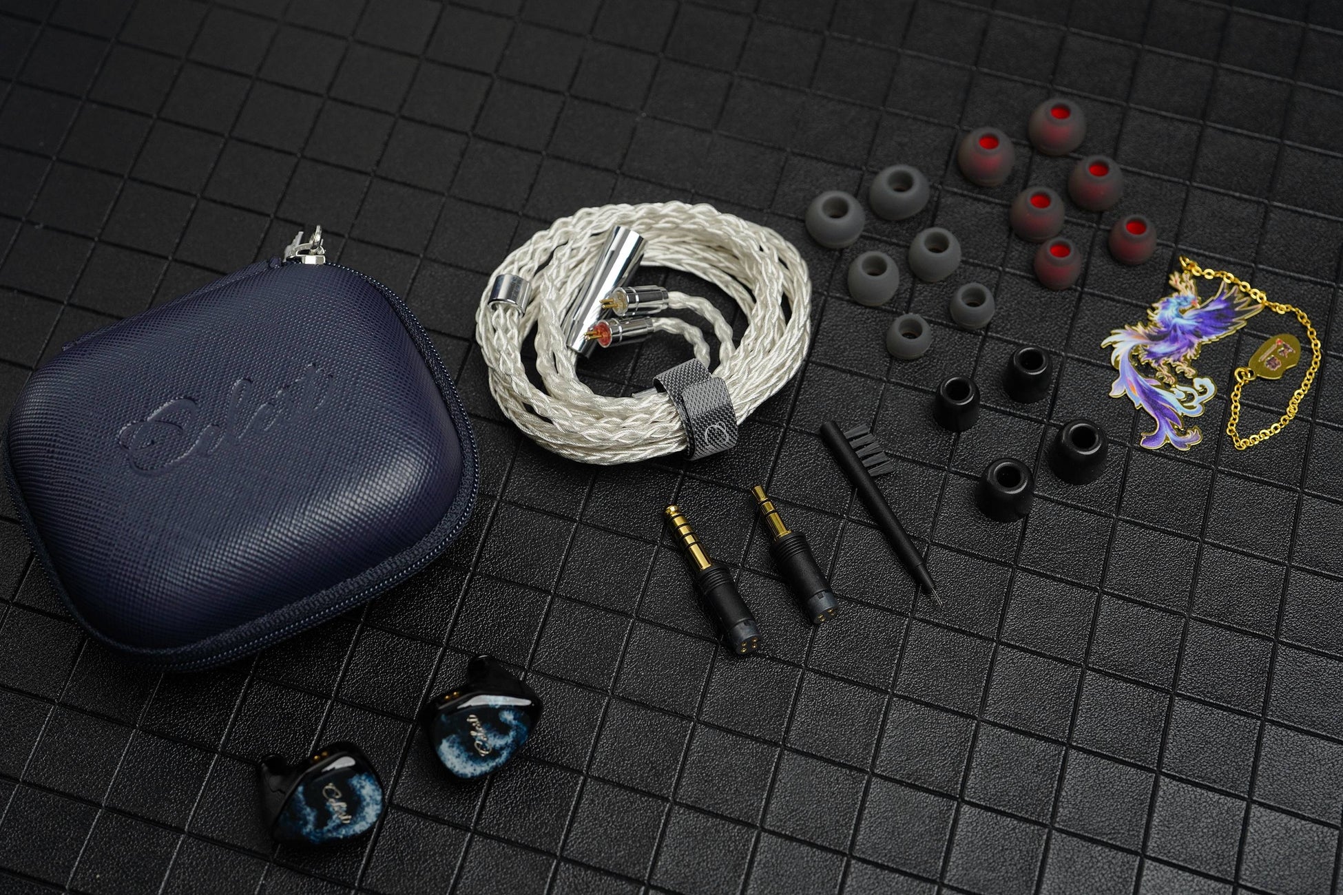 Kinera CelestはRelentless IEMsに高品質のアクセサリーをバンドルしています。高品質なイヤーチップ(ボーカル用3組、バランス用3組、フォーム用2組)が付属しています。