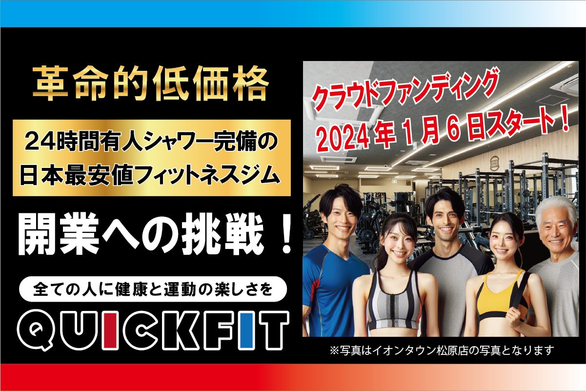 株式会社QUICKFIT(本社:大阪府羽曳野市、代表:叶丸俊介)は2024年1月6日よりクラウドファンディングサイトCAMPFIREにて「日本最安値の有人シャワー付フィットネスジム開業」へ挑戦します。