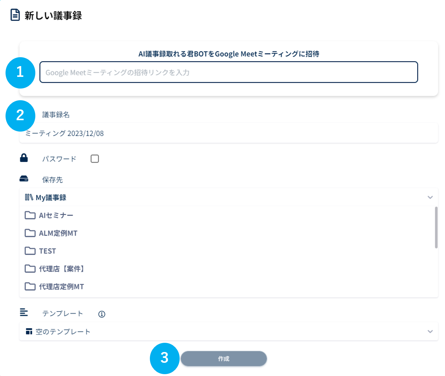 ②議事録名を入力してください。