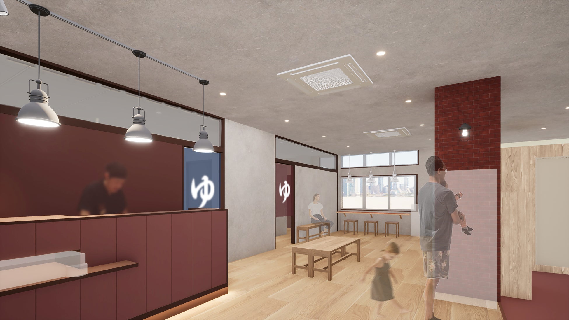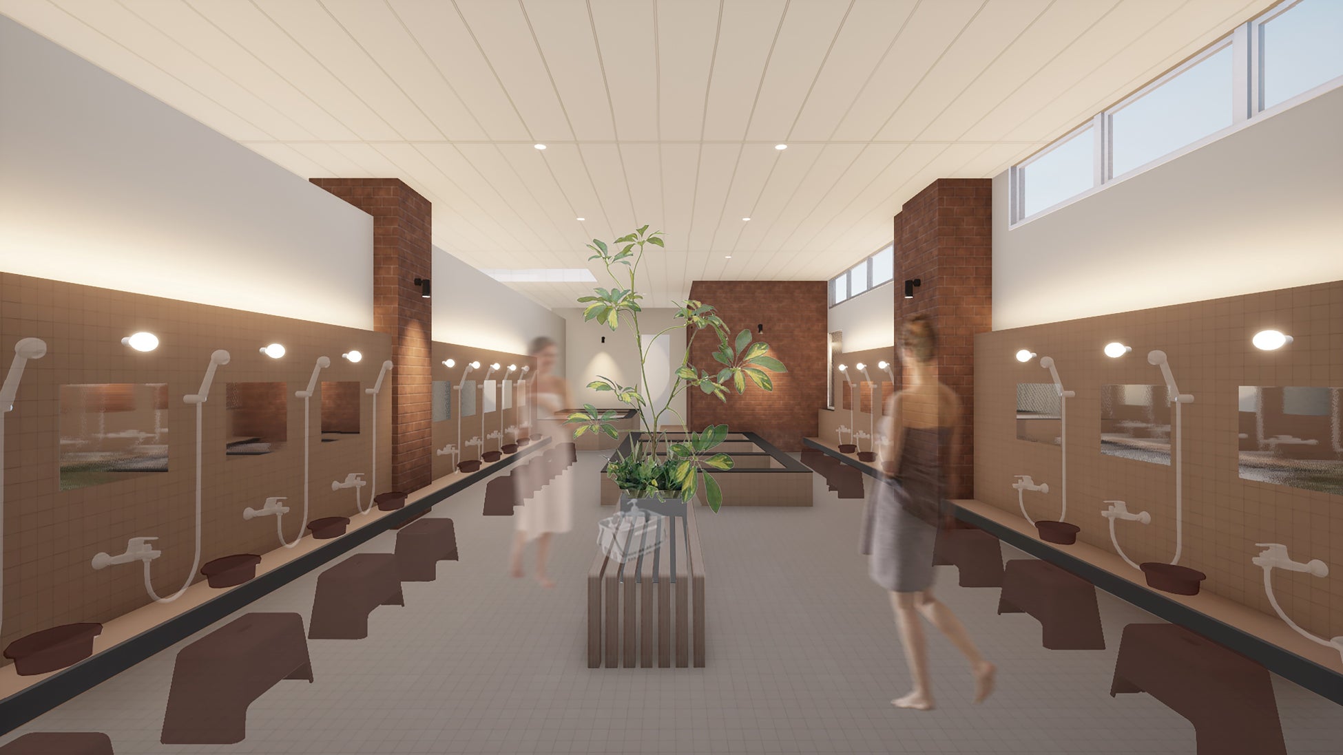 1971年築のビル外観と3階の入浴施設を、港町らしい呉の「赤レンガ」のコンセプトを残しつつ、銭湯にあまり馴染みのなかった若者や女性まで気軽に立ち寄れるような現代的デザインに刷新いたしました。また、近年人気のサウナの拡充、夜12時までの深夜営業、化粧コーナー新設、無料アメニティ設置など、魅力を高める工夫を取り入れています。日々の疲れをリセットして心と体を整え、明日への活力を養う銭湯の魅力を再発見してもらうことを目指します。