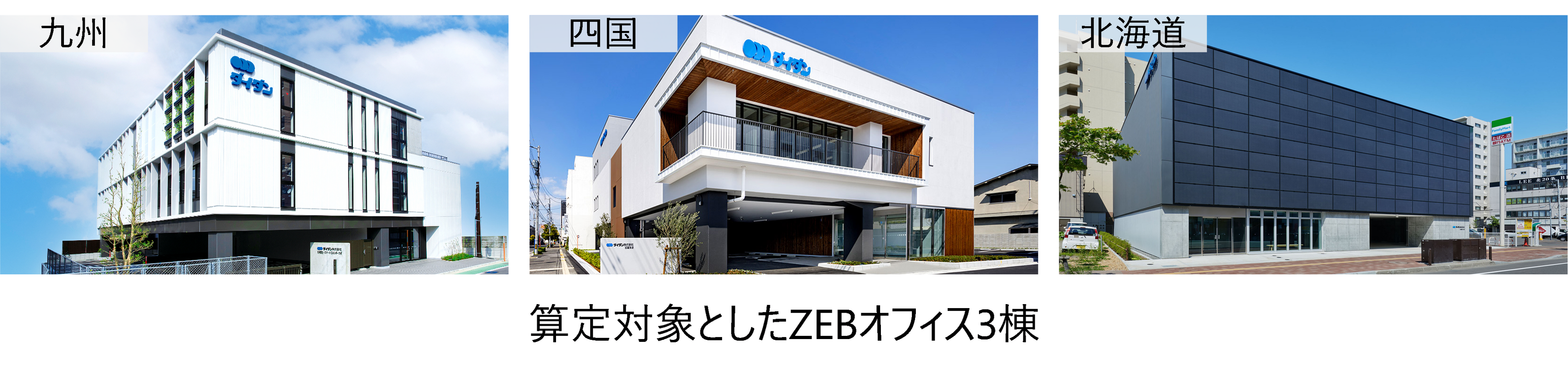 本取り組みでは、評価手法の妥当性を検証するため、NTTファシリティーズがZEB設計・監理したダイダンが所有するZEB 認証を取得したオフィス3棟(以下ZEBオフィス3棟)において、ZEB導入効果の評価を実施し、その評価の妥当性を検証、確認しました。ダイダンは、業界に先駆けて自社ビルのZEB化に取り組み、省エネ建築物の普及にむけた継続的な技術開発を行っており、ZEB導入効果の検証においては、検証に必要なデータの検討、収集を担当しました。