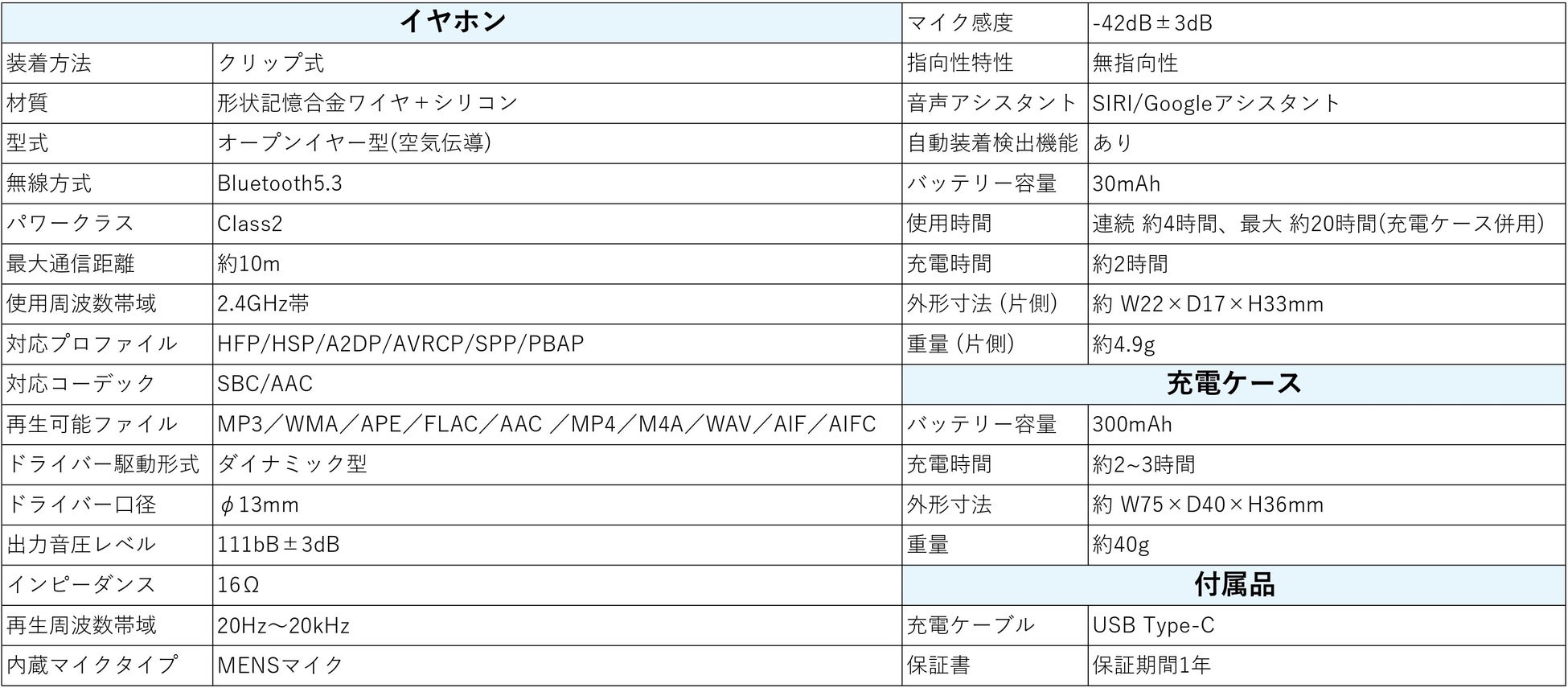 イヤホン単体で最大4時間の音楽再生や通話が可能、充電ケースを併用することで最大20時間の再生や通話が可能となります。