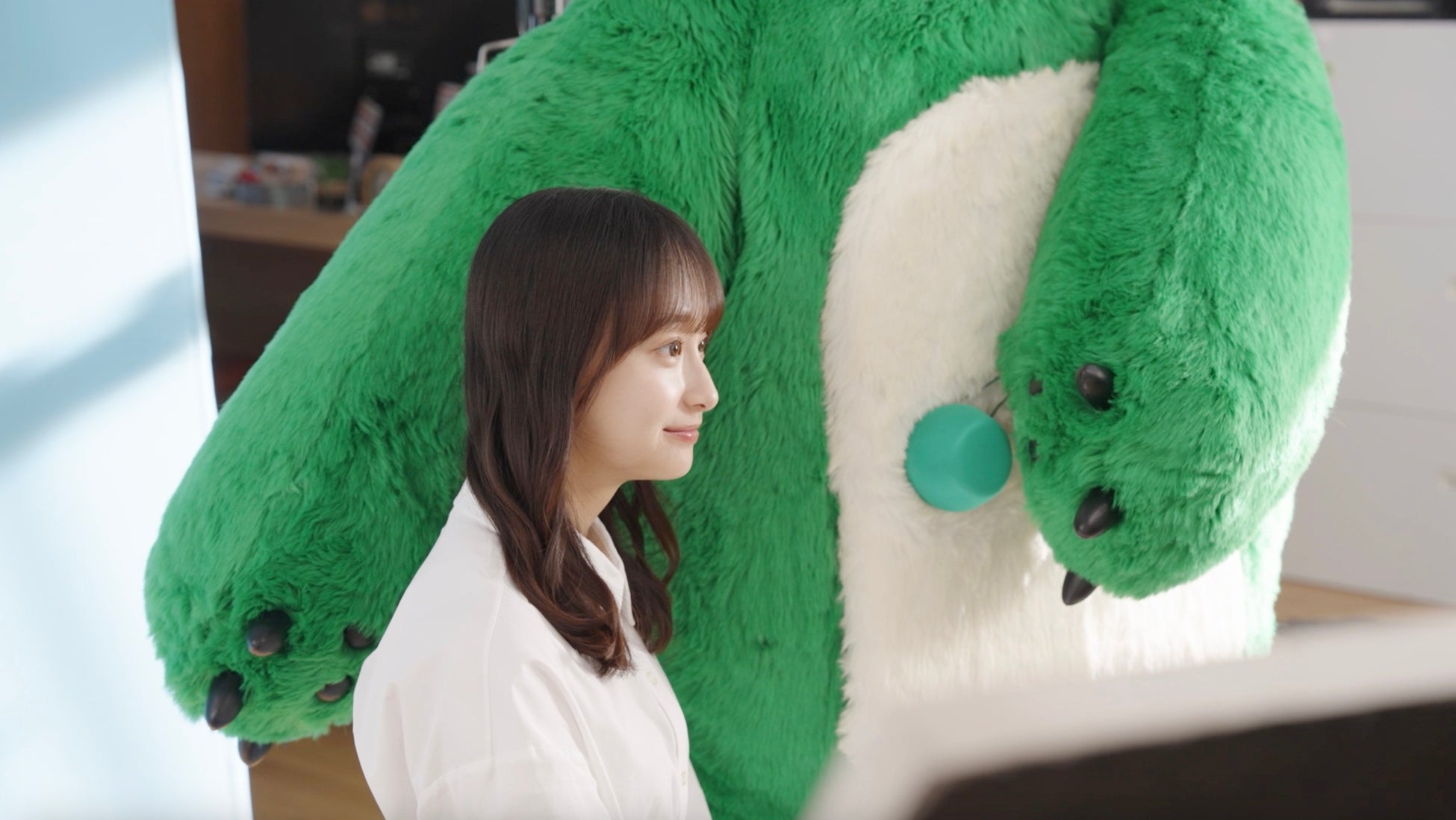 新CM公開に合わせて、影山優佳さんとタウンベアのキュートな表情が魅力の新ビジュアルを公開いたします。