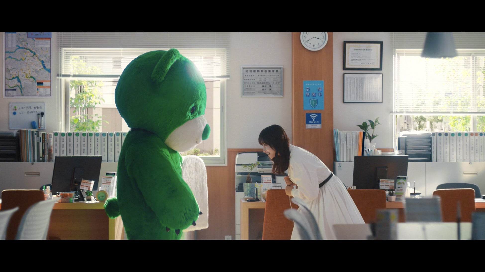 ある日、お部屋を探しにタウンハウジングの店舗に訪れる影山さん。「お部屋探しているんですけど・・」と声をかけると店舗奥からトコトコと音をたてて登場したのは、タウンハウジングのキュートな熊のキャラクター「タウンベア」です。