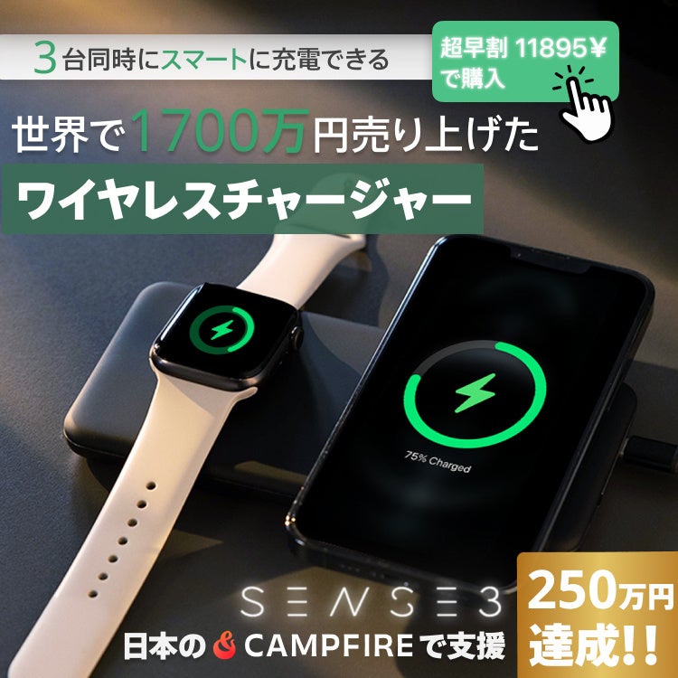 AirPowerを超えるSENSE3のワイヤレス充電器:Campfireで270万円の支援達成!!