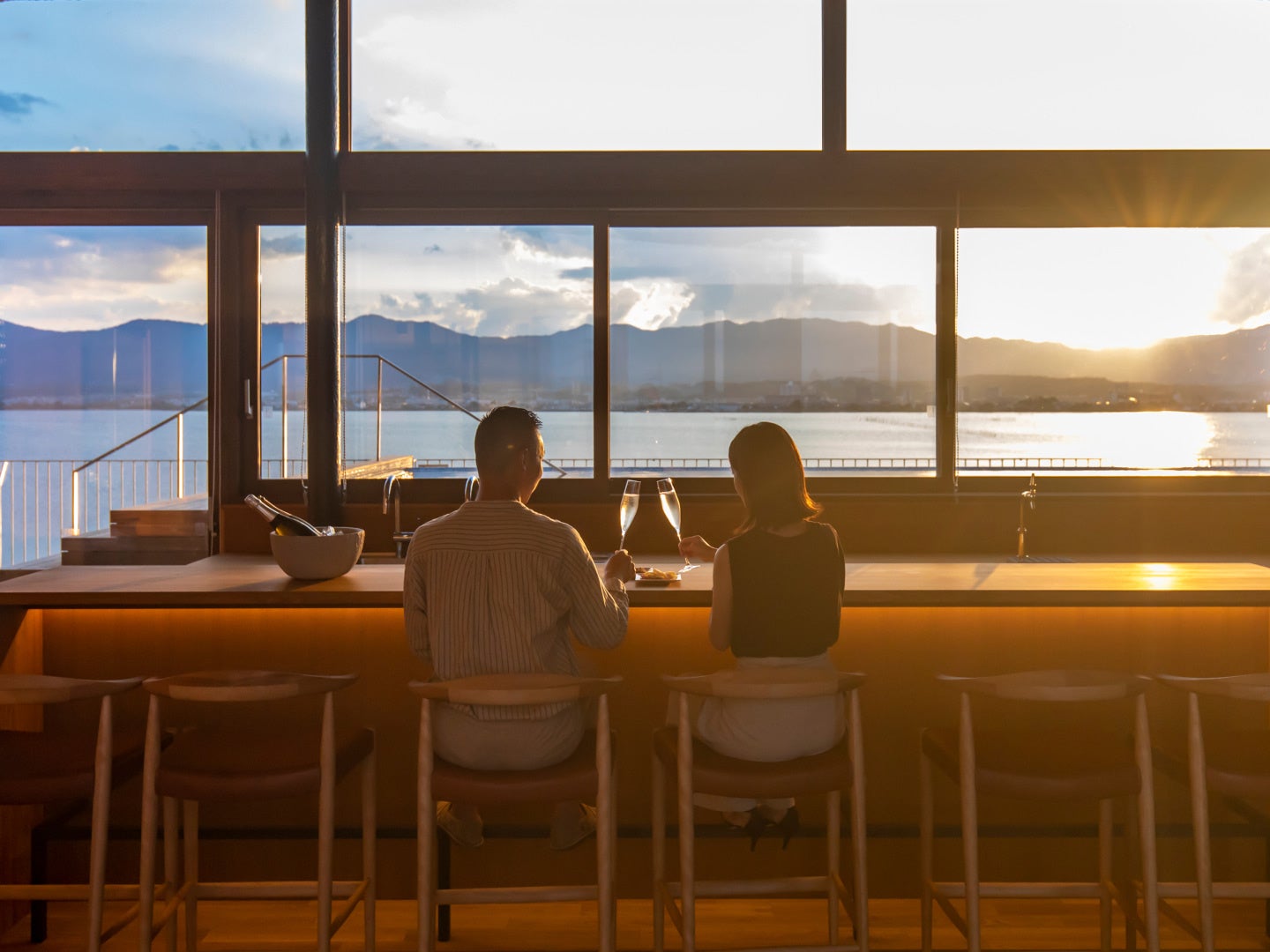 アルコール・ノンアルコールドリンク、スナックなどがご宿泊のゲストは無料でご利用いただけるオールインクルーシブ。時間の移ろいで異なる表情を見せる琵琶湖を眺めながら、至福の時間をお過ごしいただけます。