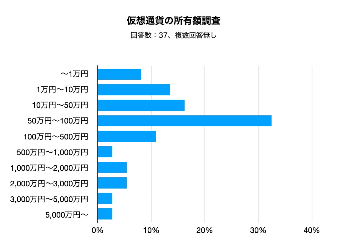 「仮想通貨の保有率」で「保有している」と回答した37名に対し、仮想通貨の保有額を10段階で調査しました。(複数回答無し)