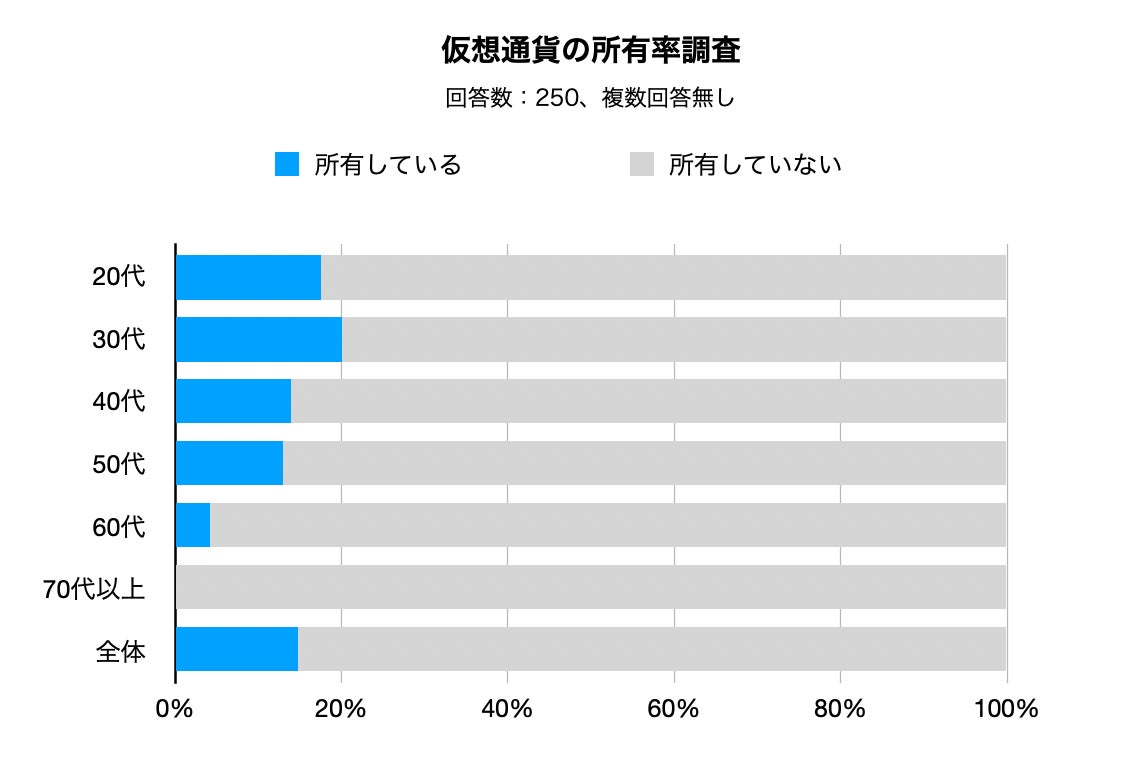 全体的な保有率は15%と低いですが、30代は20%、20代は18%と比較的高くなっています。