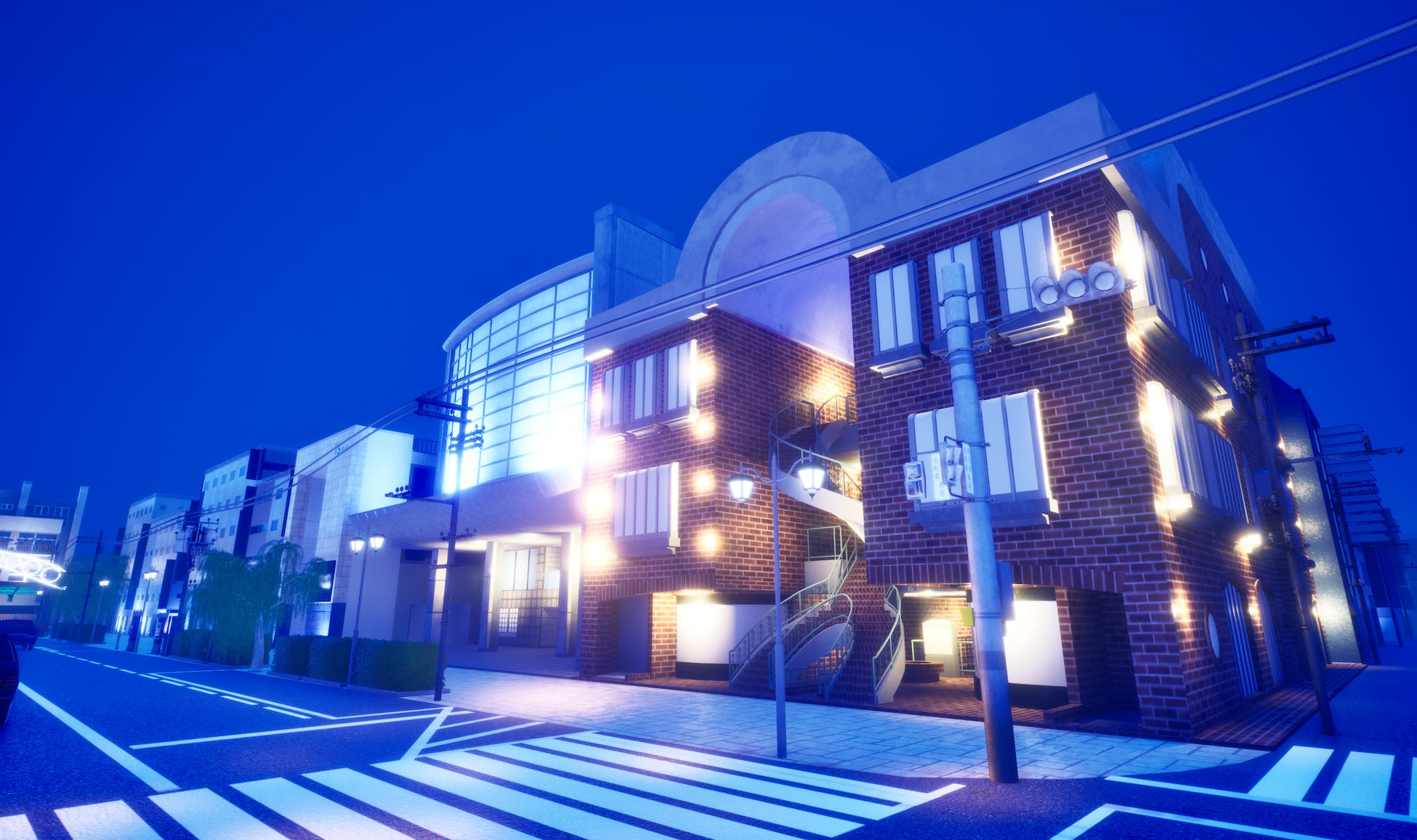 和歌山市の繁華街である「新内(あろち)」エリアを再現したマップ。 建物をモデリングで細かく再現した点が特徴的で、夜の煌びやかなネオン街を表現しています。 和歌山城や和歌山駅前とはまた違った雰囲気の中でバトルロイヤルゲームを楽しめます。
