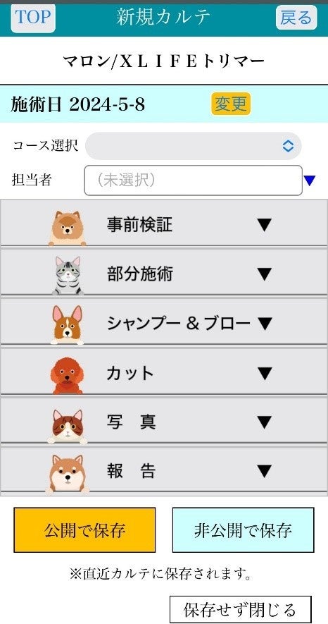 また、公開すれば共有カルテとして飼主オーナーはもとより、飼主オーナーが顧客登録している他サロンにも公開されます。