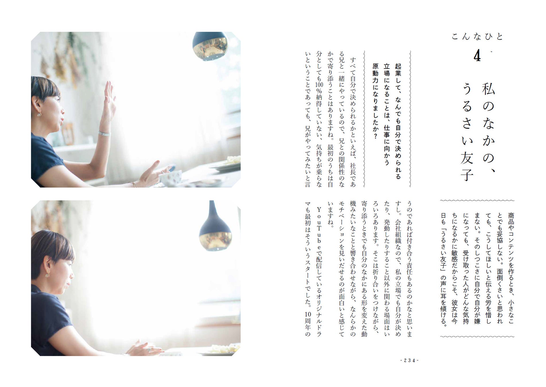 10代で自分をリセットした/「本当の自分」はノートのなかに/自分を広げていくことが心地いい/私のなかの、うるさい友子/「働く主婦」である私/「ひとりの星」を持っている人が好き/停滞している自分とも向き合いたい
