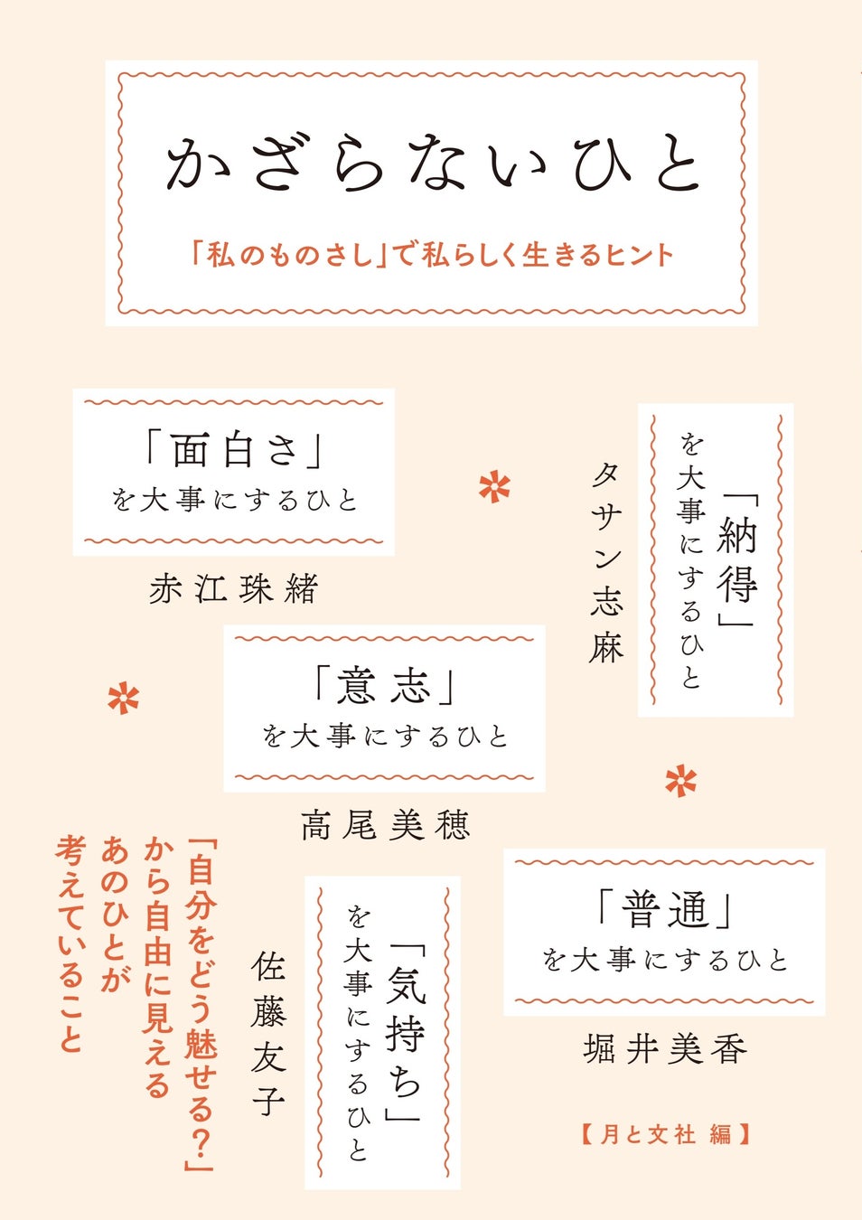 今、絶大な人気を集める「かざらないひと」たちは、どんな人生を歩み、何を大事にして生きてきたのか――。フリーアナウンサー・赤江珠緒さん、家政婦&料理人・タサン志麻さん、産婦人科医・高尾美穂さん、フリーアナウンサー・堀井美香さん、ECサイト「北欧、暮らしの道具店」店長・佐藤友子さんの5人のロングインタビューを収録した書籍『かざらないひと 「私のものさし」で私らしく生きるヒント』を、出版社・月と文社(つきとふみしゃ)が2024年2月15日に発売しました。