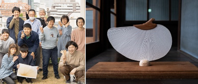 杢目文様に加え、新たに板目文様を出すことにも成功。デザインに多様性を持たせ、現代的な茶道具、花器、飾り箱などを制作。「杢目を出すのは難しいなかで、このように自由にデザインできる技術力を推したい」(審査員・清水眞澄氏)「失われた技法を解明した、ゆるがない信念」(審査員・千宗屋氏)など審査員より高い評価を得た。
