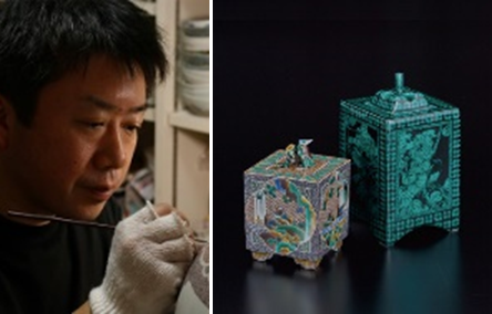 「職人、作家としての技術の高さだけでなく、経営者、産地のリーダーとして積極的に行動して産地をけん引していることは素晴らしい」(審査員・河井隆徳氏、福島武山氏)。レベルの高い作品が多い九谷焼のなかでも、独自開発した絵の具の存在感、表現力が注目された。これは剥離しにくく透明度が高いことが特徴で、鮮やかさと温かみ、立体感ある独特の表情に焼き上がる。この絵の具を用いた緻密な絵付けと産地全体への貢献が高く評価された。