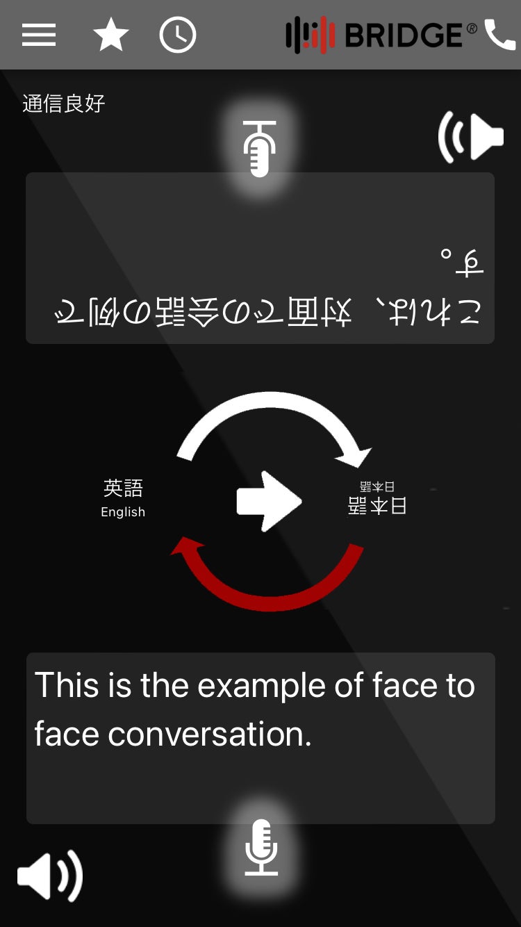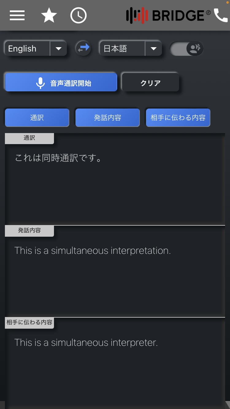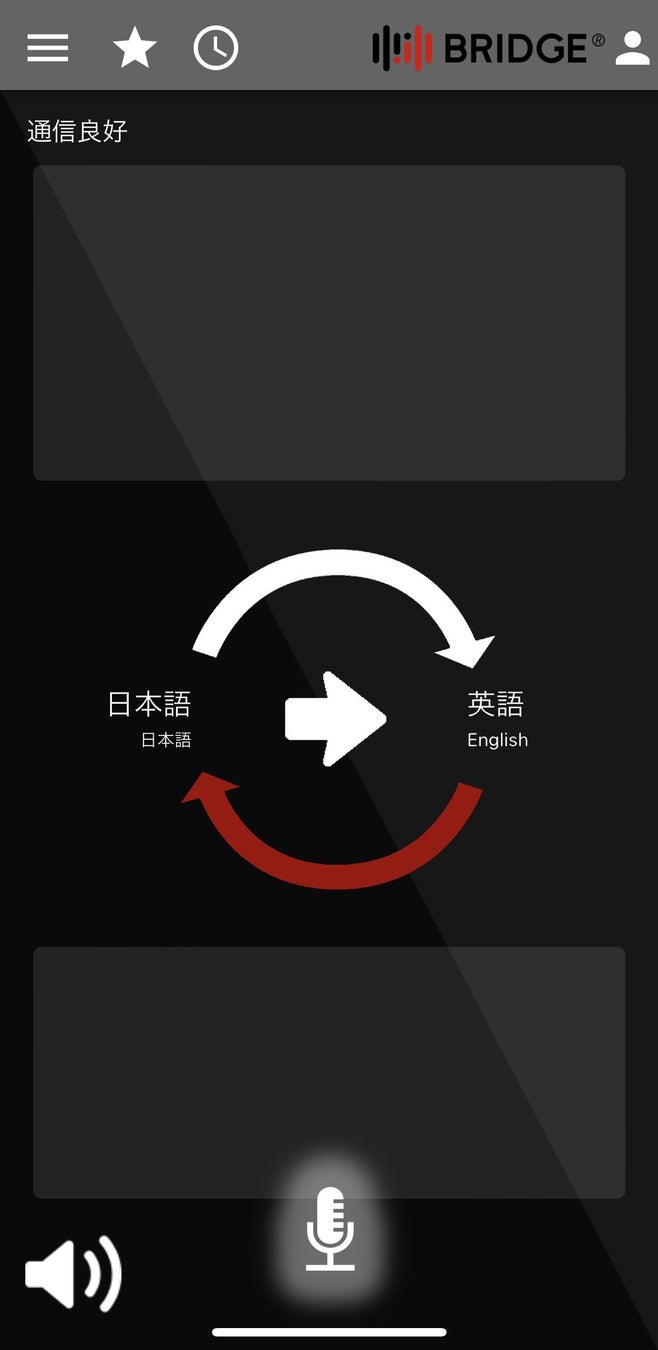 マイクボタンを押して話すと、自動的に通訳されます。