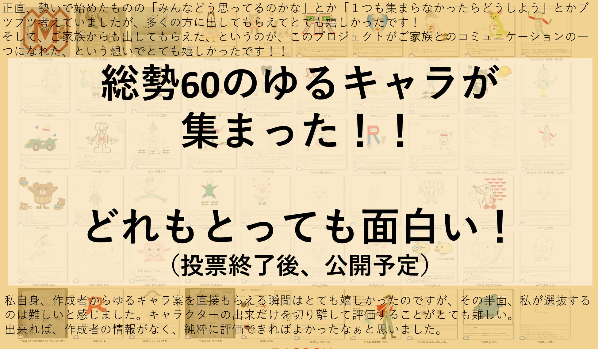 その結果、社員50名弱の会社で、60のデザイン案が集まりました。社員のご家族からも応募があり、どれもが面白いデザインばかりでした。