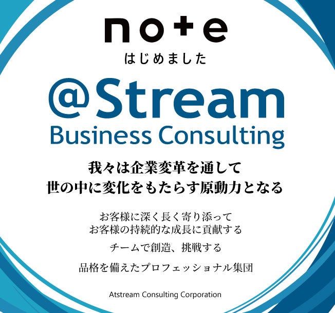 アットストリームコンサルティング公式「note」では、企業変革の推進に役立つ情報を月2-3回発信していきます。