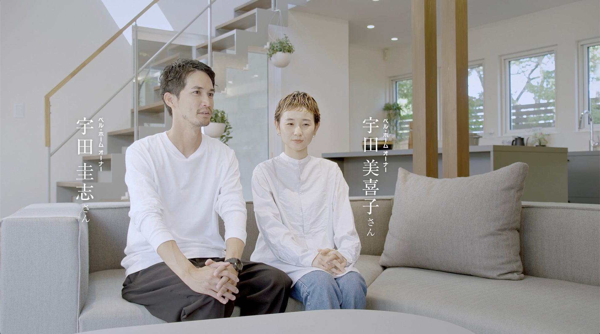 ベル・ホームのテレビCMは、これまでも実際に住宅を建てられたオーナー様にご出演いただきました。今回の新CMにおいても変わりません。ただし、竣工後すぐのオーナー様ではなく、時間が経過したオーナー様にインタビューすることで、ベル・ホームについて本音を語っていただきたいとの想いから、新テレビCMを制作しました。ベル・ホームは、今後もオーナー様の理想の暮らしに寄り添い続けます。