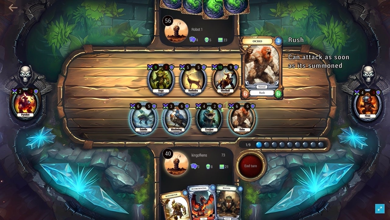 ゲームのルールは、一般的なトレーディングカードゲームに比べて直感的かつシンプルです。プレイヤーは35枚のカードからデッキを構築し、戦います。各カードには攻撃力、体力、マナがあり、ターンごとに増加するマナを消費してカードを召喚します。26種類のアビリティを持つカードの組み合わせにより、多彩な戦略を練ることができます。プレイヤーは戦闘開始時に60ポイントのHPを持ち、先に相手のHPを0にしたプレイヤーが勝利します。
