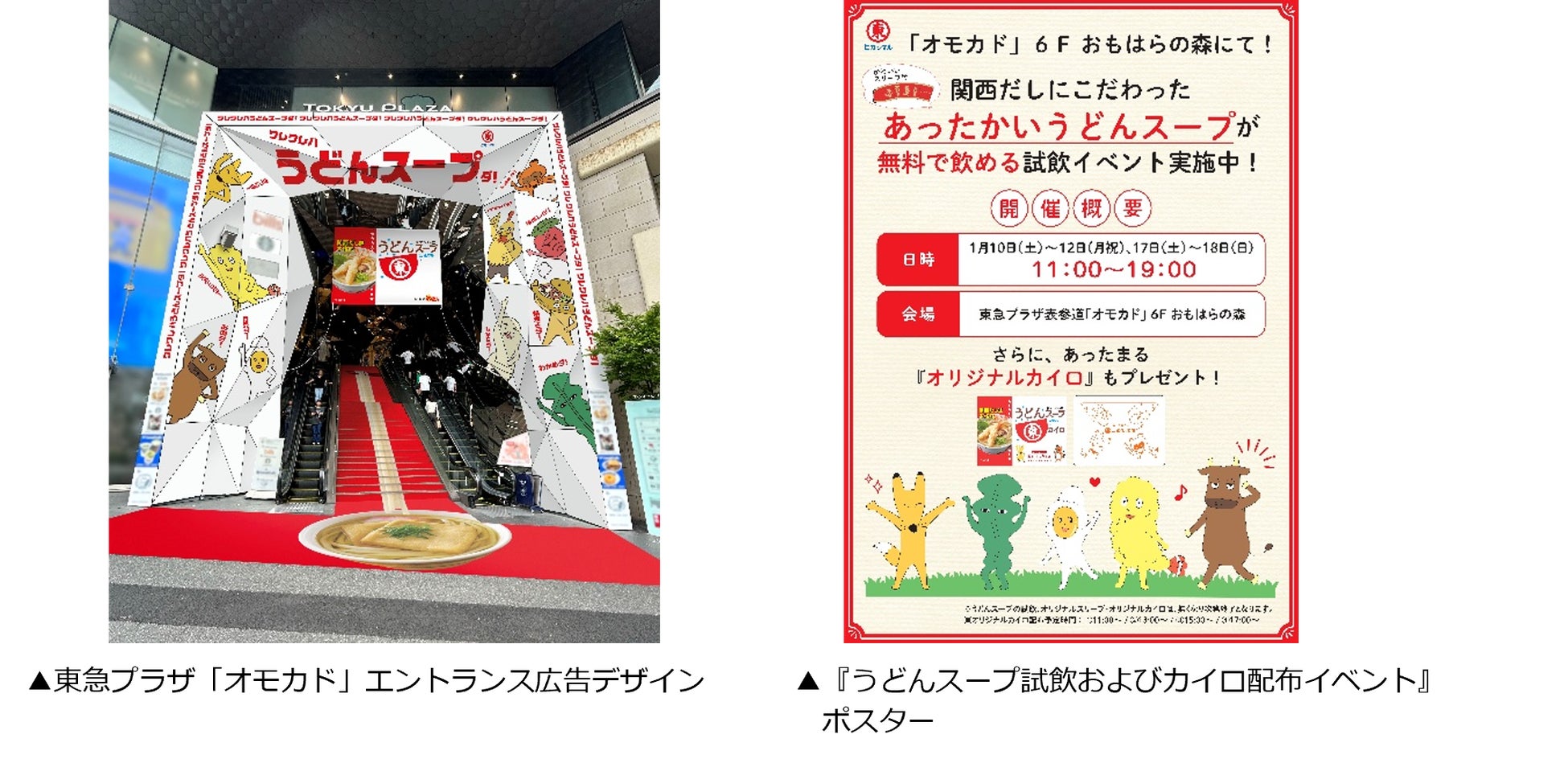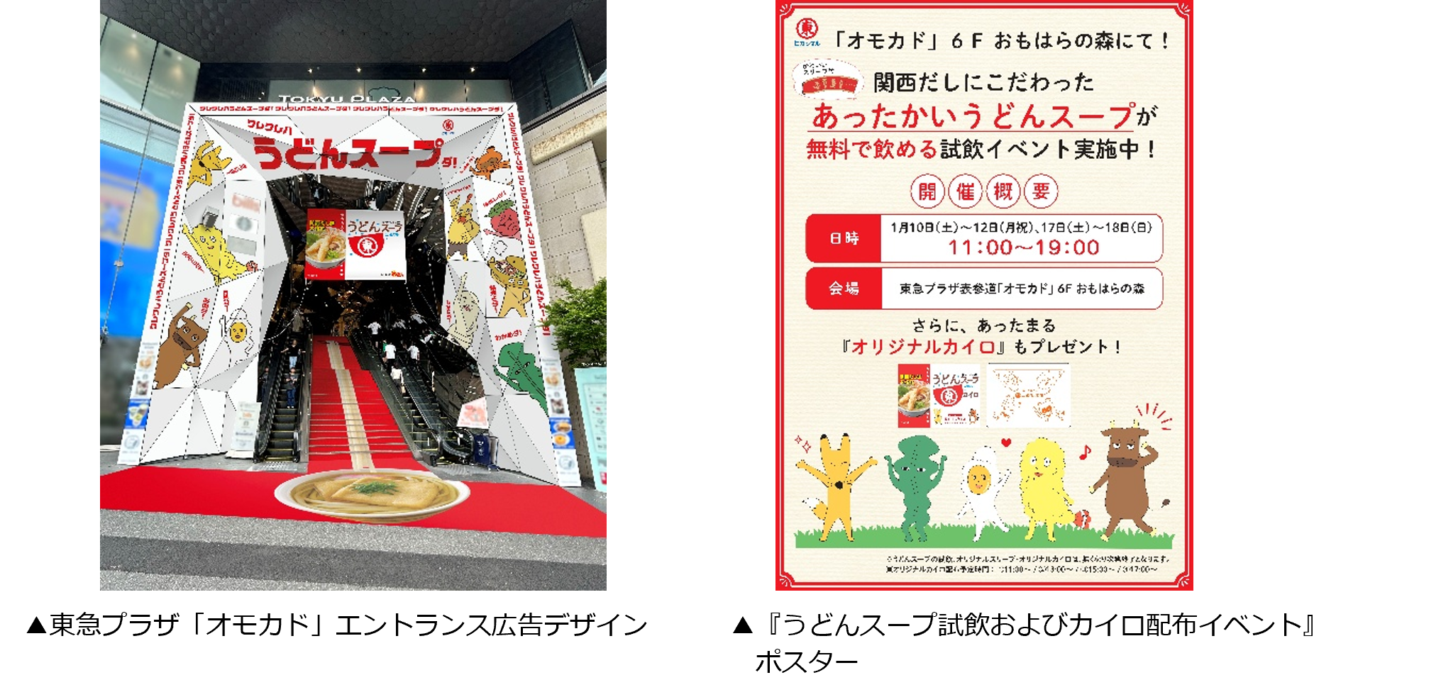 さらに、一年を通して最も寒さが厳しいとされる「大寒」の時季にあわせ、2026年1月10日(土)~12日(月・祝)と1月17日(土)~18日(日)の計5日間、同施設6Fの「おもはらの森」にて『うどんスープ試飲およびカイロ配布イベント』を実施いたします。表参道を訪れた方に、あったかいうどんスープとオリジナルカイロでホッと一息つけるような時間を提供します。
