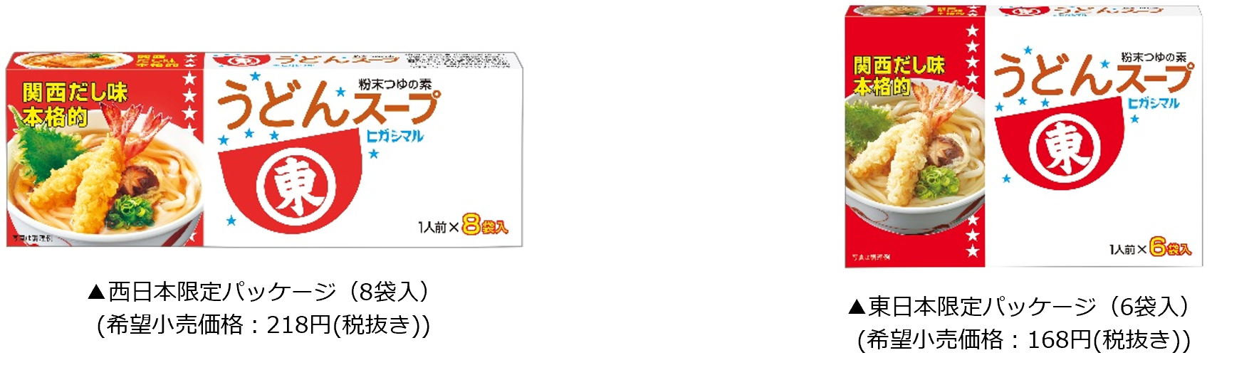 お湯にサッと溶かすだけで、本格的な関西のうどんだしが味わえる粉末調味料です。北海道産真昆布のうま味とかつお節のコクをふんだんにきかせ、本醸造淡口(うすくち)しょうゆで仕上げました。販売エリアによってパッケージは異なりますが、味は共通です。