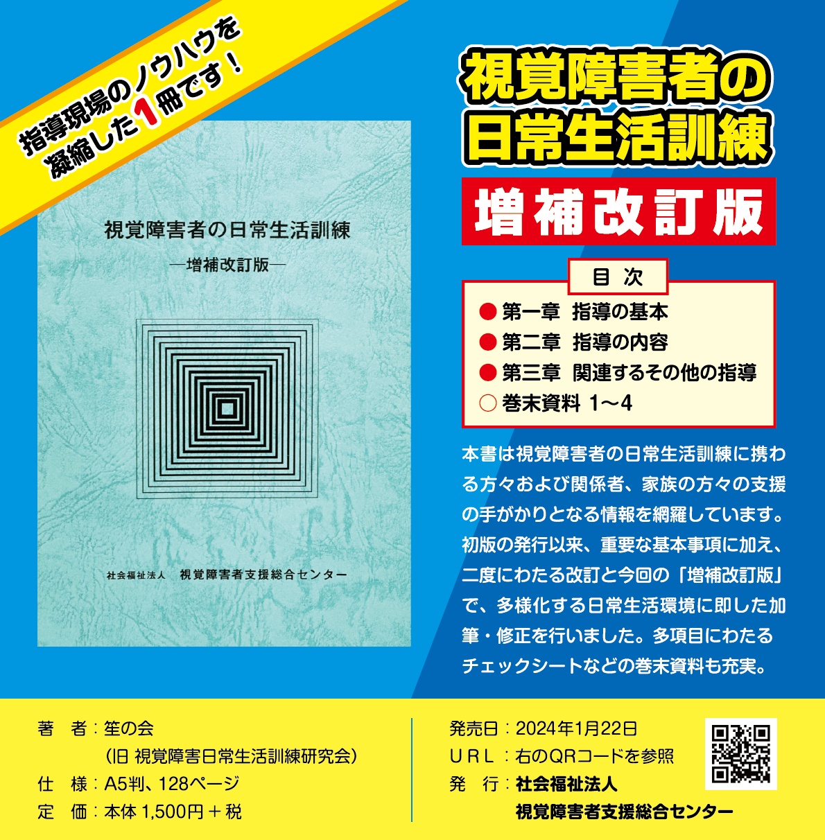 視覚障害者の日常生活に関わる指導現場のノウハウを凝縮した1冊です