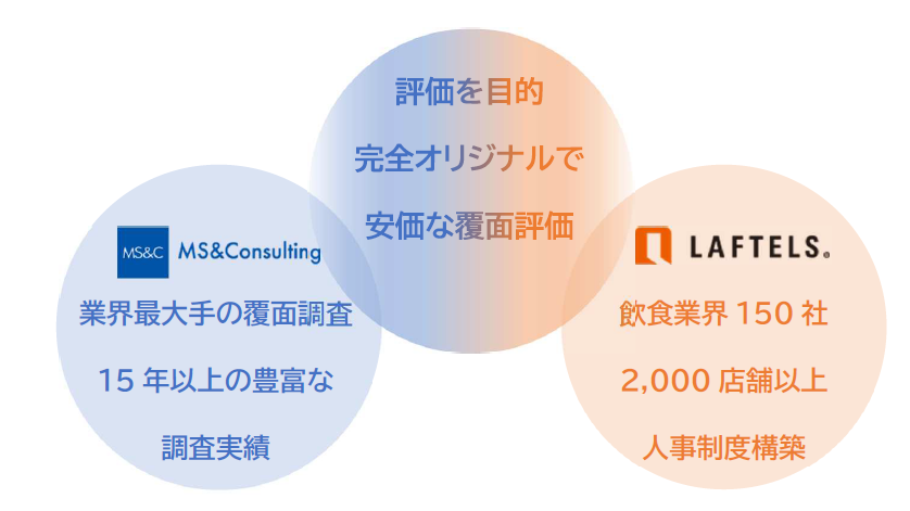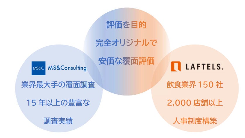 そこで数多くの飲食企業の人事制度構築を支援してきたラフテルズと覆面調査業界最大手のMS&Cが手を組むことで、成長を加速させる人事評価を目的とした「覆面評価」サービスを開発。