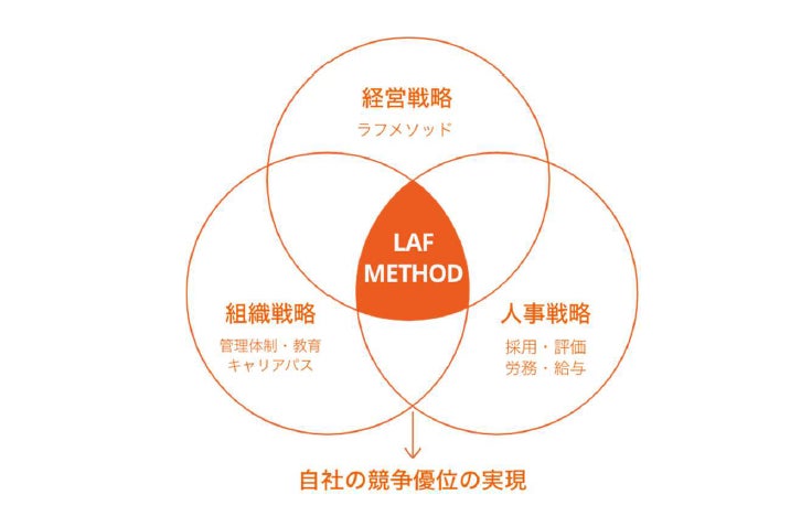 飲食企業が成長拡大していく為に必要な「管理職」排出に特化した人事戦略です。「管理職」=「AM・店長」と位置づけ、最速で「管理職」を生み出すための、評価、給与、労務、採用といった人事周りの戦略をまとめたものが「ラフメソッド」です。これまでの8年間で「管理職」を2,000人以上輩出してきた実績があり、20店舗以下の飲食企業が、成長拡大するための基盤づくりをサポートしている。