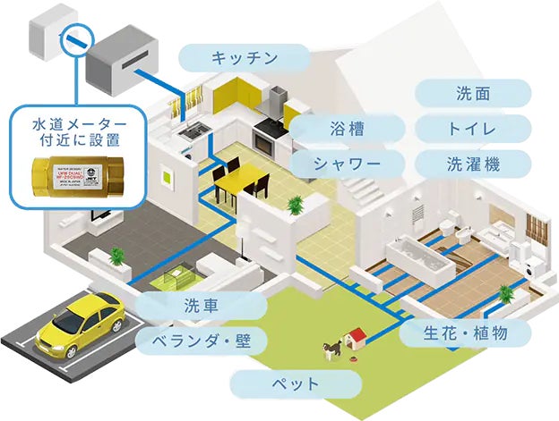 「UFB DUAL®︎」は、水道管にノズルを取り付けるだけで平均0.1~0.2㎛の微細な泡「プラチナノバブル」を生成し、建物全体で使用される水の洗浄力を向上させる日本の最新技術です。トイレやキッチンなどで水を使用するだけで衛生環境を向上させるだけでなく、排水管内の汚れを抑制し、メンテナンス頻度の削減にも寄与します。