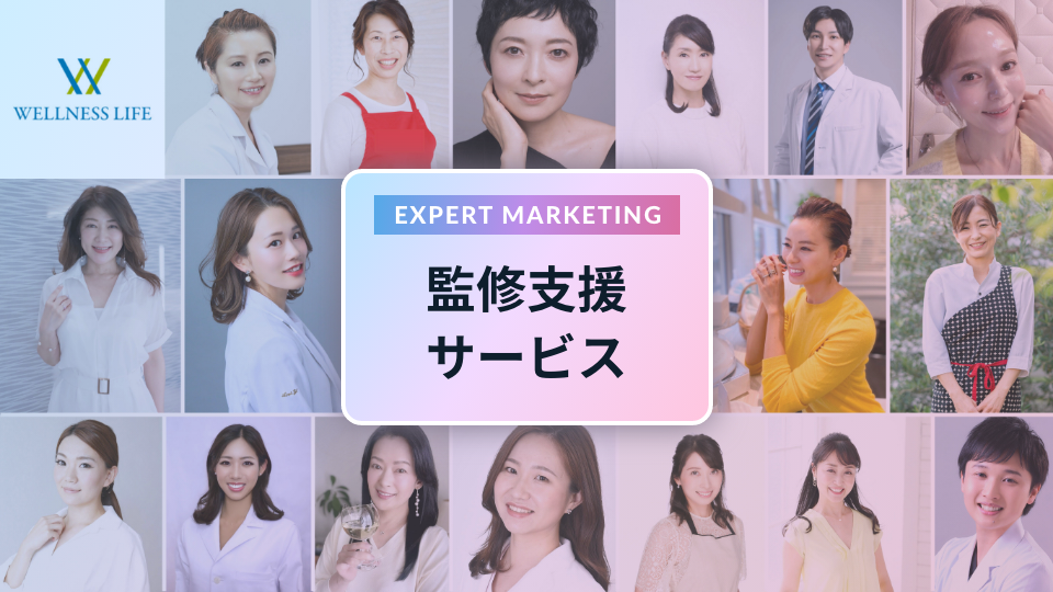 ビジネスの成功を<マーケティング目線×専門家目線>でサポート!ウェルネスライフは商品企画から新規獲得支援まで、一気通貫サポートいたします。専門家の知識とトレンドを掴んだ発想で売れる商品開発〜専門家の権威性を生かしたクリエイティブを生み出し、PR戦略を展開し御社のサービスを最大化します。