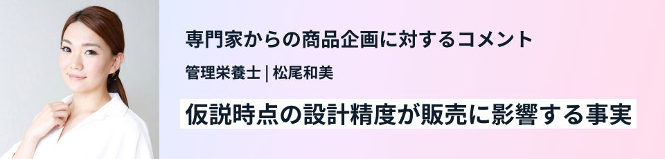 管理栄養士目線から、成分内容に足りない、原料のベストな選定ができていないとアドバイスをしたくても、製造された後では、変更することも難しく、製造後からできる施策では、期待する結果を出すことが難しい印象です。SNSや断片的な情報を鵜呑みにしてしまい、市場やターゲット分析が足りずに製造してしまった要因だと推測します。